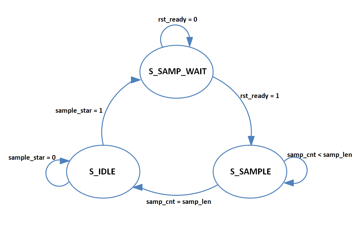 AD采集控制模块采用状态机的方式进行编写,如下图所示: