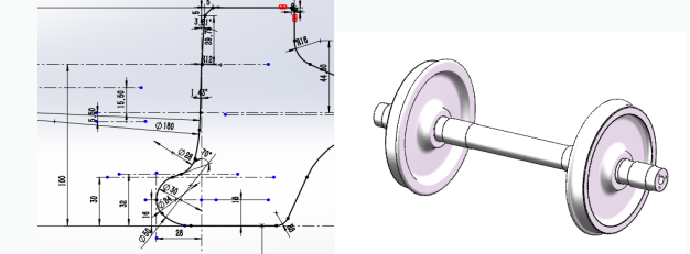 采用较大轮径的车轮虽然一定程度上会增加簧下质量,但会有效的提高车辆直线运行的稳定性,减少轮轨磨耗。由于本设计有高速的设计要求,并且采用轴盘制动方式,轮径不宜过小,因此采用915mm轮径车轮。采用LMa型踏面,车轴在客车RD3b型车轴基础上,参照内轴箱式转向架进行设计。