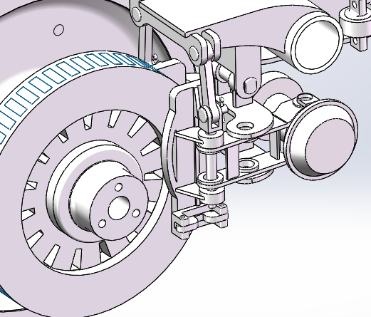 回答:首先对整个系统的拓扑图进行了绘制,在绘图过程中理清了各部件与参考下以及部件间的铰接约束力元形式。之后先建立轮对子装配体,建立构架后将轮对导入,在关键节点添加约束设置对应力元,至此完成构架子装配体。之后利用虚车体结构与构架连接,同样设置对应力元。最后建立车体模型,将车体与前后虚车体连接,完成建模。