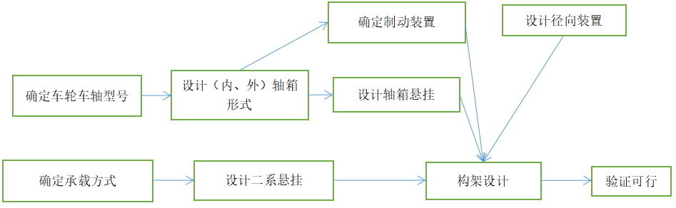 2.参照国内外快速货车转向架技术指标,以及结合内轴箱式转向架技术特点确定设计内轴箱式高速货车转向架技术指标,并进行总体设计。