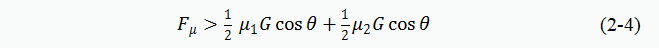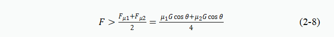 当绝缘包裹机器人在架空线上工作的时候,有两种情况:一种是修补的时候,前轮与后轮都不与导线直接接触,都作用在绝缘层上;另一种是修补或者整改的时候,前轮直接作用在导线上而后轮作用在绝缘层上。显然后者相比于前者更容易打滑,所以单独将后者情况拿出来做分析即可,前者情况拿来验证即可。