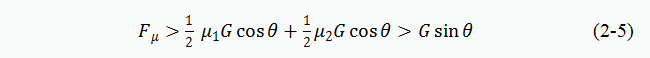 轮子采用铝合金制作,由于摩擦系数较低,在表面采用硅胶材料浇筑,增加摩擦力,查资料可得,轮1与架空线之间摩擦系数μ1=0.25,轮2与架空线上绝缘层之间的摩擦系μ2=0.5。所以,机器人可以顺利攀爬15°斜坡。