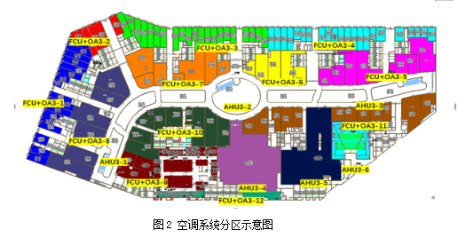(4)空调系统方案设计:对建筑空调区域进行划分,针对不同分区确定合适的空调方案。并选择 数个典型空调系统进行空气处理过程的设计与计算。