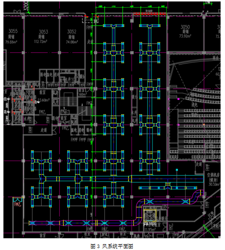 (5)空调风系统设计:进行典型区域的气流组织计算,分析室内气流组织的合理性,最后对空调 风系统进行详细的水力计算。