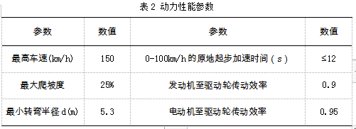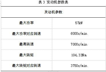 通过以最高车速匀速行驶在的高速公路上所规定所需的功率确定发动机功率,发动机参数总结为下表3。