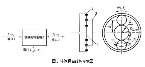 机械耦合有三种形式,分别是转矩耦合、转速耦合和功率耦合。转矩耦合装置和转速耦合装置均具有三个端口和两个自由度。
