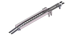 首先,主梁在装备中同时起支撑和滑动的作用,主梁里侧下端设有轮槽,伸缩梁上的侧向滚轮可以在槽里滑动,伸缩梁上的垂向下滚轮与主梁上里侧的滑槽相接触,可以在其上进行滑动。同时主梁在设备中承载了大部分的承接力,并传到中支撑部分。