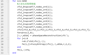 2.3小波包模糊熵(WPFE)的提取。1948年,香农把“熵”的概念引入到信息论中,提出了香农熵。随着信息熵的概念被推广和广泛使用,用于分析时间序列复杂度的各种熵也被提出。2007年,Chen等人在样本熵的基础上通过引入一种指数函数——模糊隶属度函数,得到了改进的样本熵,即模糊熵。本次设计基于小波包变换,对3层变换后各节点的系数计算模糊熵,归一化后,每个样本可提取一个包含8个小波包模糊熵的频率序列特征。