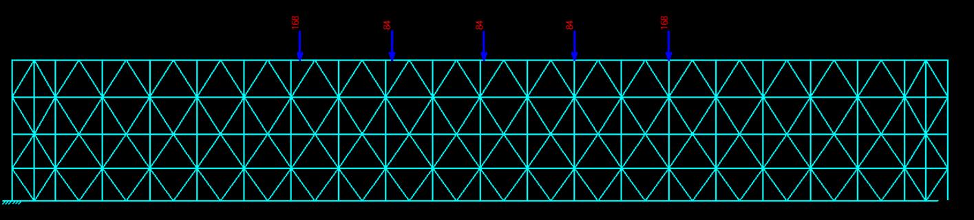 运用工程分析软件PKPM建立针梁纵向平面的桁架杆件的二维模型(如图10所示),将各个阶段中的极端情况下的受力情况加载到针梁纵向平面的二维模型上,通过PKPM进行计算,得到针梁的桁架杆件的应力情况。