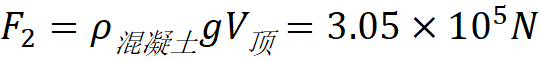 第六阶段,模板上外载荷为液相混凝土对模板造成的重力F2,此时第一到五阶段所浇筑混凝土已经成为固相而脱模,对侧模板无压力作用,重力F2为: