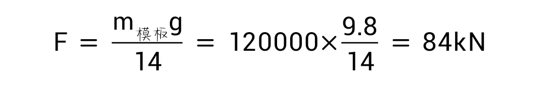 第一阶段,模板上外荷为液相混凝土对模板造成的浮力F1,浮力F1为: