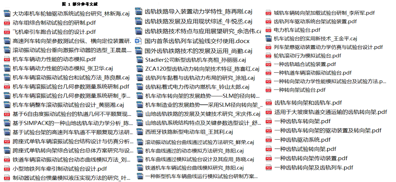 (1)广泛使用文献检索方法,对关键词相关内容进行检索,调研转向架动态模拟试验台国内外研究现状,为后续研究提供知识储备。