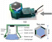 图1 Gel-Sight传感器原理图、实物图以及形状测量示意图