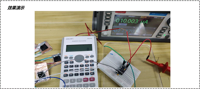将传感器阵列与芯片连接,通过源表监测电路状态,实现了对负载为3V的计算器的供电。