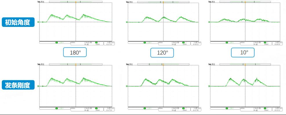 图14 多次激励下不同初始角度、发条刚度的电压曲线图