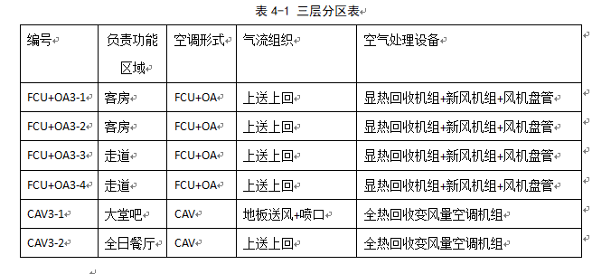 该酒店共计客房279间,其中三层面积空调面积为4370㎡,客房数66间,层高3.4m,冷负荷为379.51kW。四层空调面积3073㎡,客房数67间,层高3.4m,冷负荷为153.08 kW。五层空调面积3391㎡,本层客房数67间层高3.4m,冷负荷为177.03kW。六层面积3391㎡,房数79间,层高3.4m,冷负荷为187.08kW。