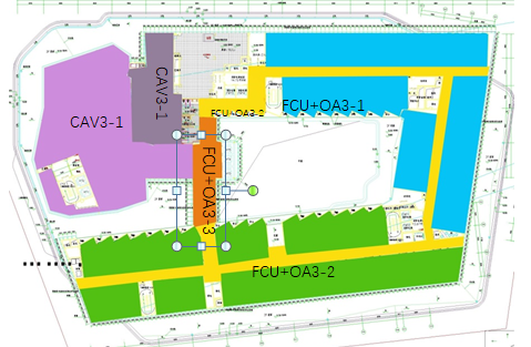 新风系统以FCU+OA3-1为例,完成了风口的布置和风管的绘制,用天正软件计算的方法算出了风管的阻力。