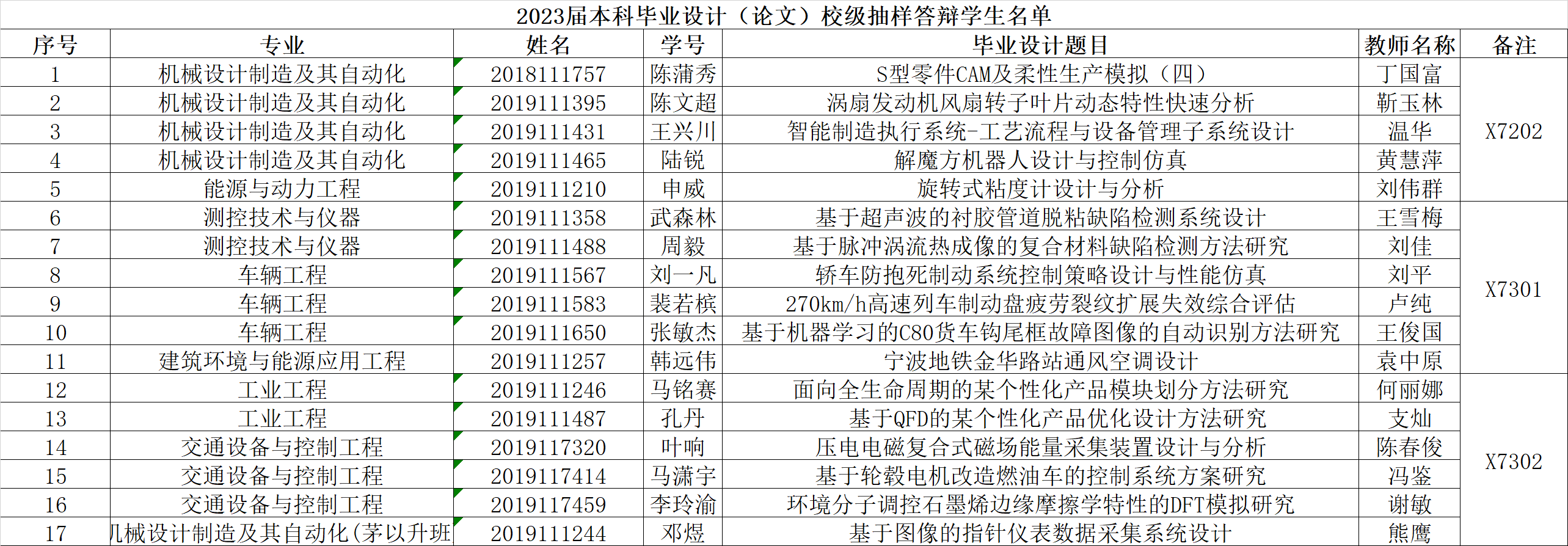 - 附件【附件2:2023届本科生毕业设计(论文)面上答辩安排.xlsx】