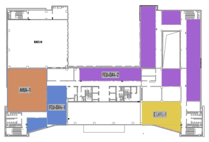 在本次设计中选取建筑B区即3-4层进行空调系统设计,该建筑3-4层中的空调区域包括会议室、办公室、报告厅等空间。