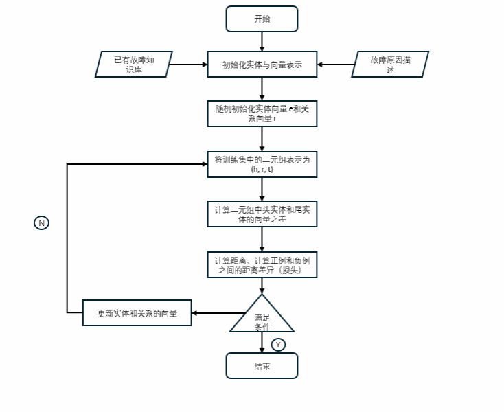 如上图所示,基于知识图谱表示学习的故障知识推理算法流程主要包括如下3个步骤: