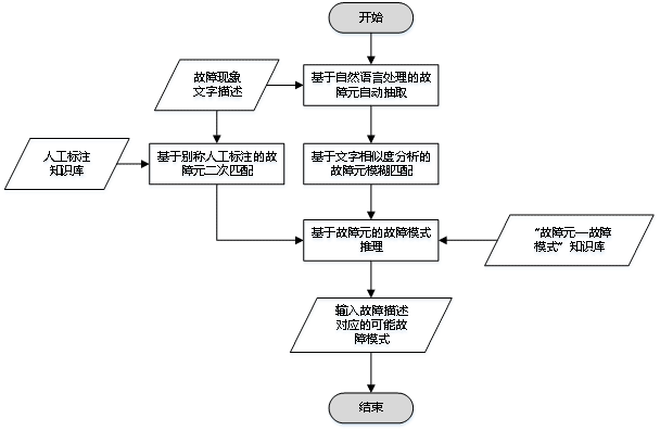 其中步骤3)输入为故障现象的文字描述和人工标注知识库,输出为“故障描述——故障元”人工匹配结果;