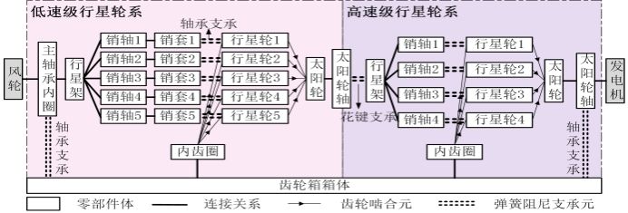 图2 集成式风电机组传动链低速级和高速级行星轮系参数