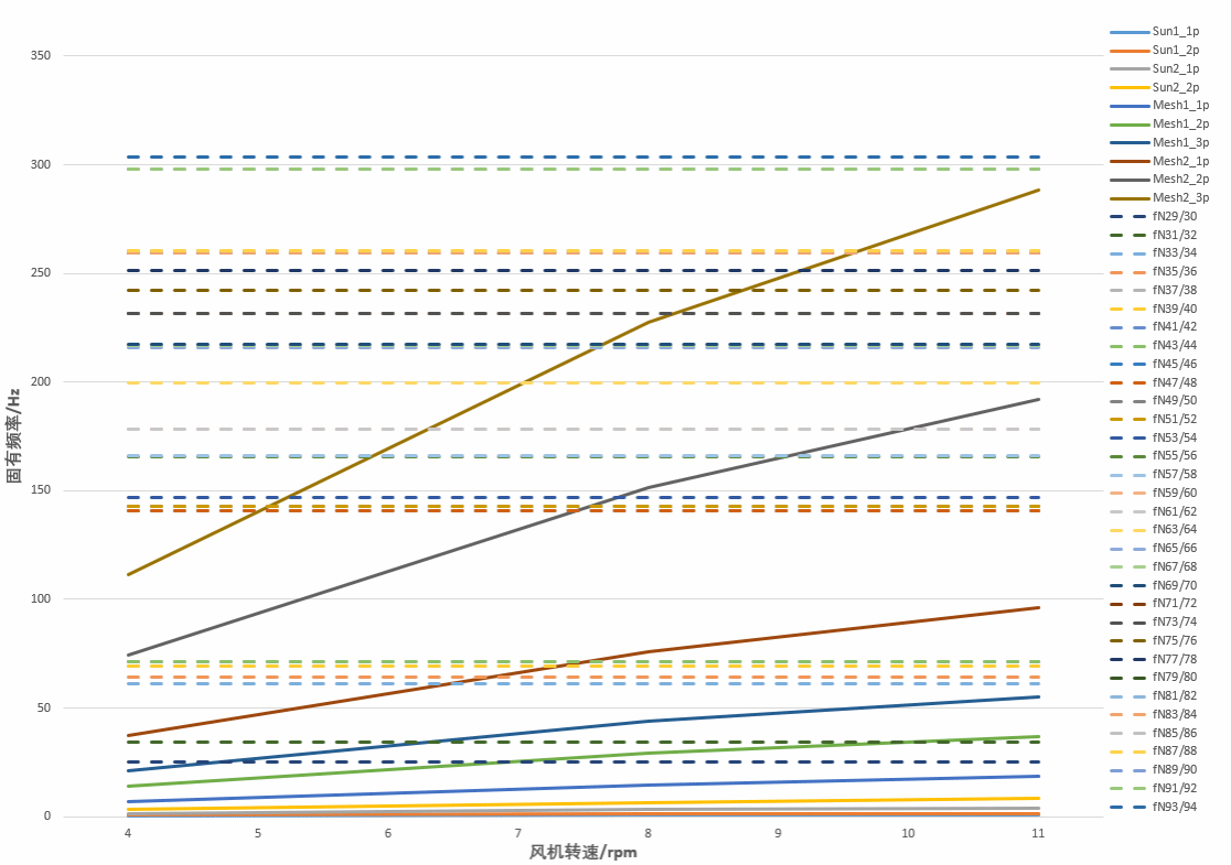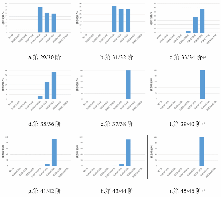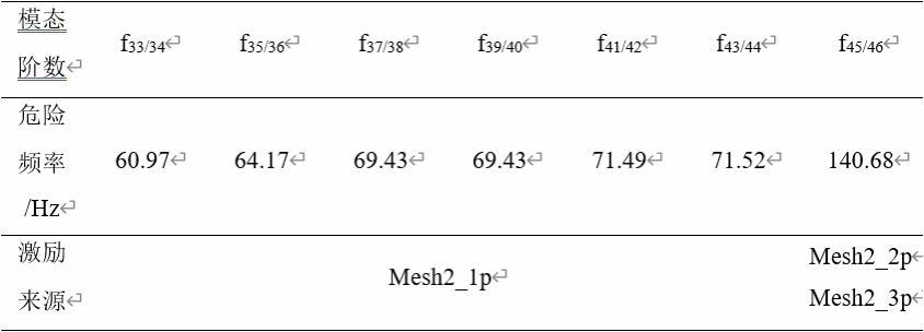 结合坎贝尔图与模态动能分布图,分析出该传动链共有21个潜在共振点,并且激励来源全部为高速级行星轮系,如图所示。