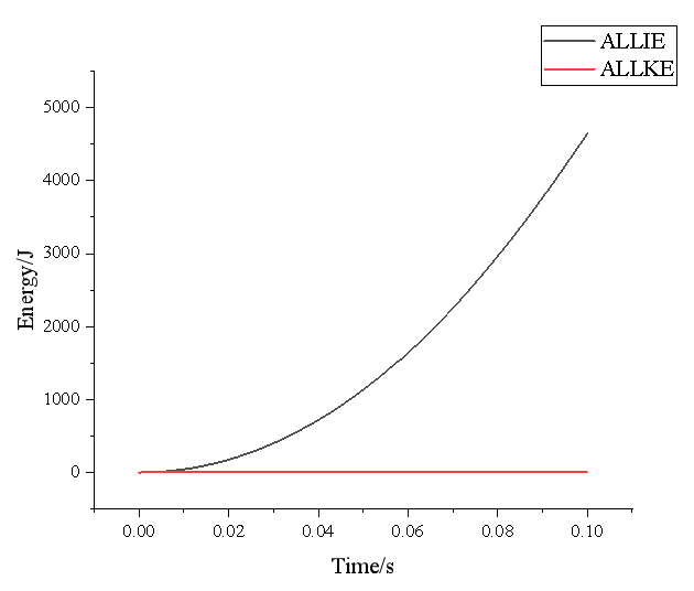 分别绘制三点弯曲的力-位移曲线,在显式动力计算方法中,输出模型总动能与总内能曲线,验证准静态过程。由结果可知,两种计算方法的结果近似,验证了模型的稳定性,且显式动力的计算过程为准静态过程,结果如图所示: