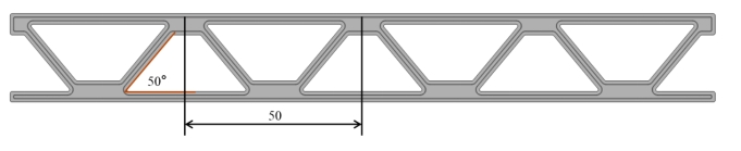1.已完成课题背景与文献调研。结合课题组已有研究成果与综合考虑打印时长等因素,通过SolidWorks建模软件完成了夹层结构的设计。通过切片软件Aura认识了3D打印夹层结构的打印方式和结构,为有限元模型的建立提供基础。