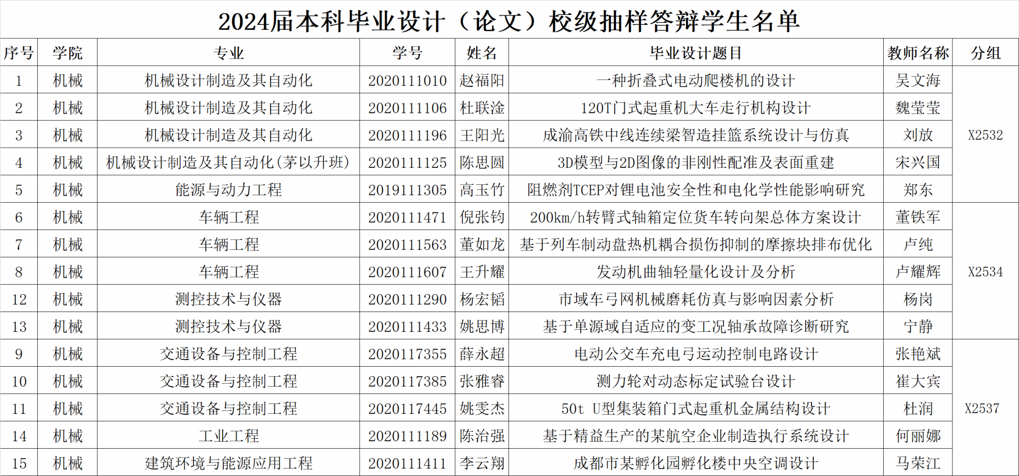 各系所完成答辩后,请于6月9日12点之前在教务网上提交成绩;机械、车辆专业请于6月9日9点之前将答辩成绩发送至jxbkjw@swjtu.edu.cn,公司将统一提交成绩。