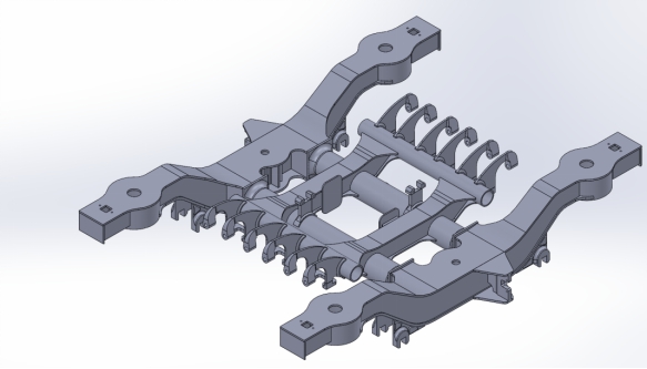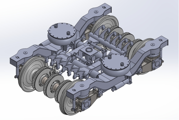 (1)查找相关文献,对比国内外转向架结构及各项技术参数,确定转向架总体方案并建模。