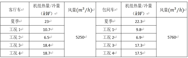 (2)列车既有空调系统关键参数计算:查阅相关图纸与规范,确定旅游专列空调系统的相关参数,并计算列车的冷热负荷和空气处理过程,根据结果选择对应的空调机组和计算既有的送风参数。