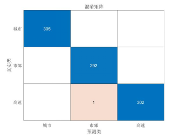 1. 设置随机种子为42,定义样本数 num_samples = 1000,创建特征矩阵 features(3000行×6列),创建标签向量 labels(3000×1) 2. 生成三类工况数据 3. 城市工况 4. for 每个特征列: 5. 生成正态分布数据(例:平均速度 N(25,5)) 6. 设置前1000行标签为"城市" 7. 市郊工况 8. for 每个特征列: 9. 生成正态分布数据(例:平均速度 N(40,8)) 10. 设置中间1000行标签为"市郊" 11. 高速工况 12. for 每个特征列: 13. 生成正态分布数据(例:平均速度~N(100,10)) 14. 设置后1000行标签为"高速" 15. 数据预处理 16. 将矩阵转换为数据表格: 17. 添加特征名称:平均速度、速度标准差、最大速度、怠速时间比例、加速度标准差、最大加速度 18. 添加标签列DrivingCycle 19. 划分数据集: 20. 按7:3比例分割为训练集train_data和测试集test_data 21. 训练随机森林模型 22. 设置模型参数: 23. 树数量num_trees = 100 24. 最小叶子样本min_leaf = 5 25. 训练模型: 26. 使用TreeBagger算法 27. 输入:训练集特征和标签 28. 启用特征重要性计算 29. 预测测试集标签: 30. 获取预测结果predicted_labels和概率分数scores 31. 计算准确率: 32. 比较预测标签与实际标签 33. 输出准确率百分比 34. 可视化: 35. 绘制混淆矩阵 36. 绘制特征重要性条形图 37. 保存训练好的模型到文件:random_forest_model.mat |