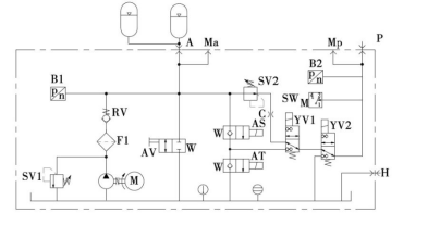 1.完成了液压系统的方案设计,依据车辆功能分析,完成液压系统配置图和液压系统原理图设计,如图1和图2。