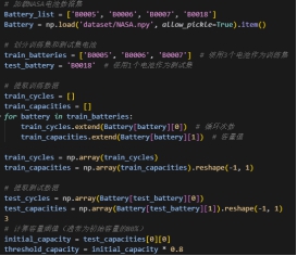 (1)锂电池数据采集与预处理:收集并预处理锂电池的历史数据,以便于后续模型训练和测试,我主要采用NASA的锂电池公开数据集。