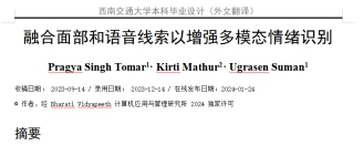 2.完成两篇外文翻译:《Fusing facial and speech cues for enhanced multimodal emotion recognition》和《Neural correlates of individual differences in multimodal emotion recognition ability》