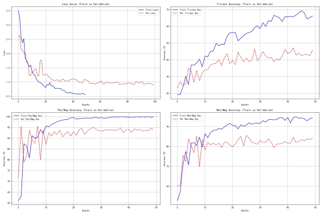 完善所有设计功能后,依次对 CMU-MOSI 和 CMU-MOSEI 数据集进行深度训练,采用分阶段训练策略,逐步提升模型的性能。通过对比不同阶段的训练结果,分析模型在不同数据集上的适应性和优化方向。