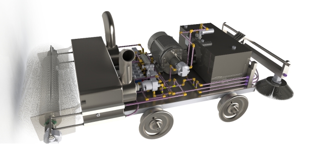 在三维建模阶段,我使用SolidWorks完成了装置的整体结构设计,并重点设计了除雪装置、连接件的强度以及液压管路的布局。同时也遇到了部分问题如: