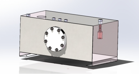 通过前文计算可知,系统所需流量约为100L/min,根据液压油箱选择标准,取液压油箱容量为300L,三维模型如图1: