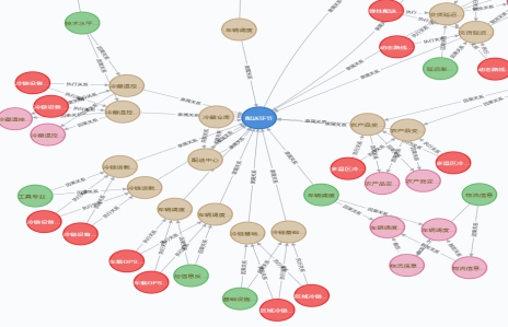 (2)知识图谱可视化:结合Python工具在Neo4j运用Cypher语言将之前模式层与数据层的内容进行可视化,从而完成知识图谱的可视化表达。其以生鲜供应链风险知识为基点,以六个供应链环节(计划、生产、销售、配送、退货、采购)为框架进行展示。为展示整体效果又不失细节,为此我将展示图8知识图谱整体图和图9配送环节局部图。