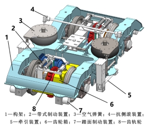 (1)转向架总体方案设计,根据国内外发展趋势和实际需求,确定齿列车转向架的总体设计方案。