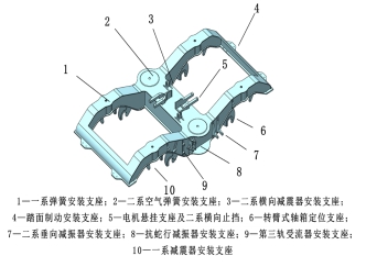 图6 齿轨转向架总体装配图 图7 构架模型