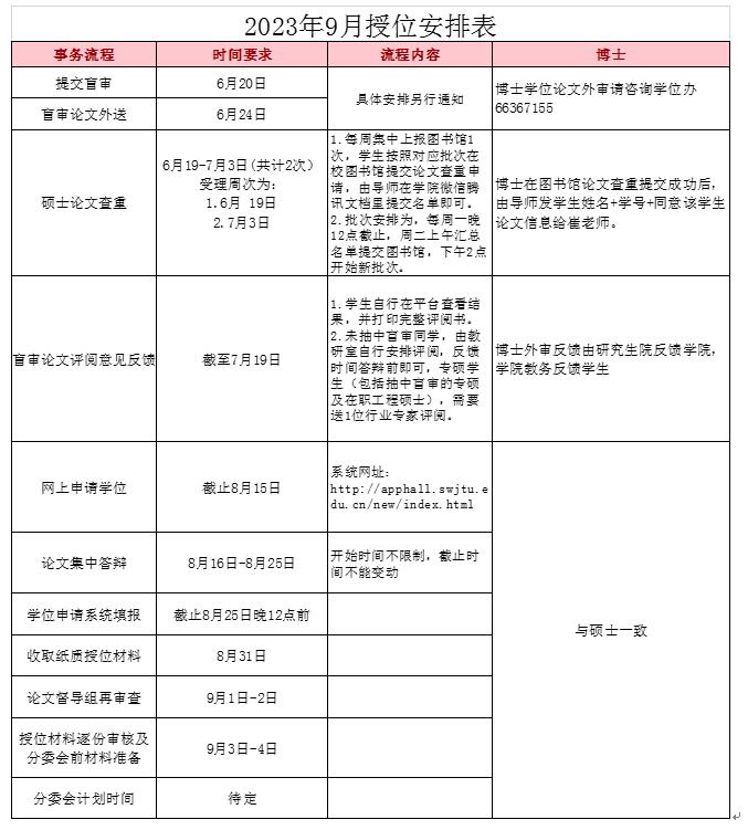 参加2023年9月授位的博士、硕士(在职工程硕士、同等学力)研究生: