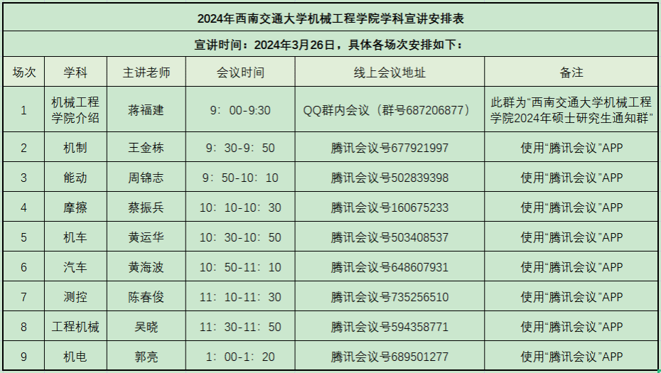 2024年硕士研究生招生学科线上宣讲会安排如下: