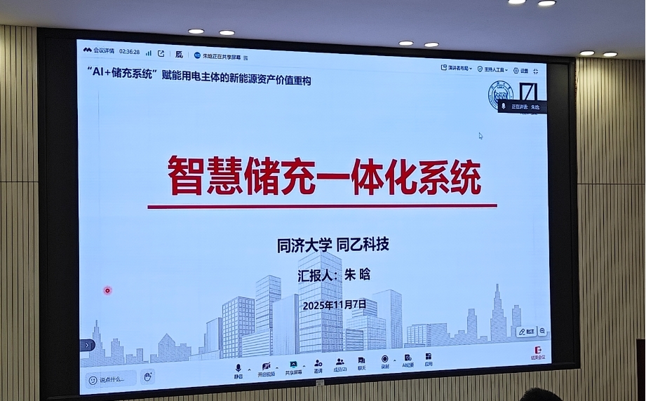 在短暂茶歇后,来自产业界的专家分别给在座导师们带来了人工智能在产业中的应用报告。杨良义副总工以“智能驾驶系统整车场景测试技术应用及展望”为题(见图5),分享了目前智能驾驶技术在检测和评价方面存在的问题,以及具体的解决思路,其讲座为各位导师抛出了如何评价人工智能应用时的安全性和稳定性的问题,为各位导师尤其是自动化领域导师的研究开启了新的思路;而朱晗助理教暨副总经理的“产学研实践-智慧充储一体化系统(线上)”报告(见图6),则分享了如何将教学、科研和工程实践多线并行,将科研成果带出实验室,解决实际工程中的具体问题,其还进一步强调了工程硕博士在成果转化过程中应当作为主力军,发挥其对产业发展、市场需求的了解对科研成果的细节进行优化改进。