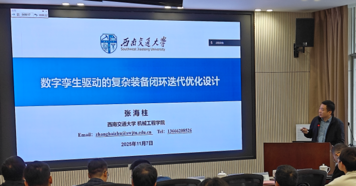 随后,交流论坛活动正式开始,郭亮教授的“工业人工智能及机械装备智能运维典型应用初探”(见图3)以及张海柱副主任“数字孪生驱动的复杂装备闭环迭代优化设计”(见图4)为在场导师们给出了人工智能在轨道交通运维和复杂装备设计制造方面的具体应用案例,并分享了在讲科研成果实际应用到具体工程中时所遇到的有关交流沟通、资金扶持和市场反应等方面的具体问题,且强调了工程硕博士在成果落地转化过程中所发挥的关键作用。